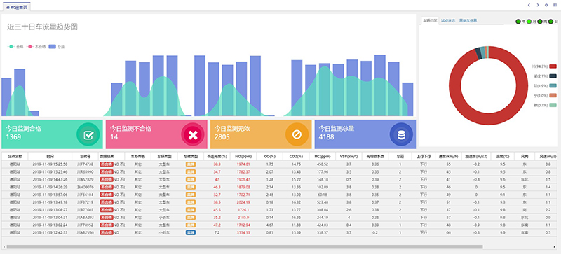 本平臺集數(shù)據(jù)采集、統(tǒng)計分析、報告發(fā)布、地圖于一體,實時監(jiān)測各個監(jiān)測點位上下行車道的車輛排污情況及各站點的環(huán)境空氣質(zhì)量信息。通過與其他交管信息庫對接,可以實現(xiàn)車輛基本信息的查詢,并由此對黃綠標車、車輛燃油等類型的數(shù)據(jù)進行統(tǒng)一的檢測和分析,可應用于有車輛經(jīng)過的各個車道、場所以及車流量集中地。