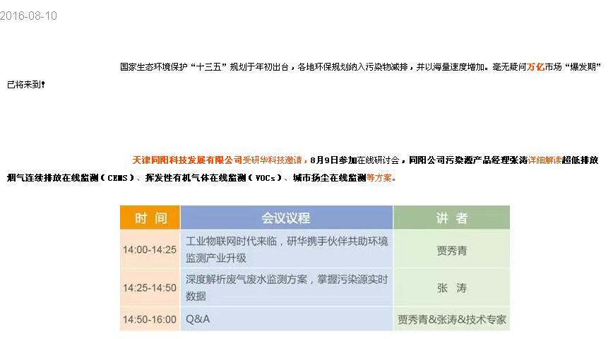 【環(huán)保十三五】天津同陽(yáng)科技受邀參加環(huán)保行業(yè)在線研討會(huì)