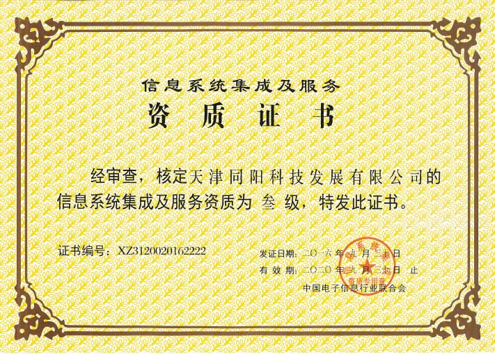 天津同陽科技獲得叁級信息系統(tǒng)集成及服務(wù)資質(zhì)證書 更新時(shí)間:2016-10-12 點(diǎn)擊:21894 所屬欄目:公司新聞 Update Time:2016-10-12 Hits:21894 Belong Column:News 天津同陽科技發(fā)展有限公司獲得叁級信息系統(tǒng)集成及服務(wù)資質(zhì)認(rèn)證。