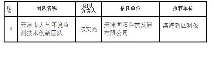 天津同陽(yáng)科技發(fā)展有限公司“天津市大氣環(huán)境監(jiān)測(cè)技術(shù)創(chuàng)新團(tuán)隊(duì)”成功入選。
