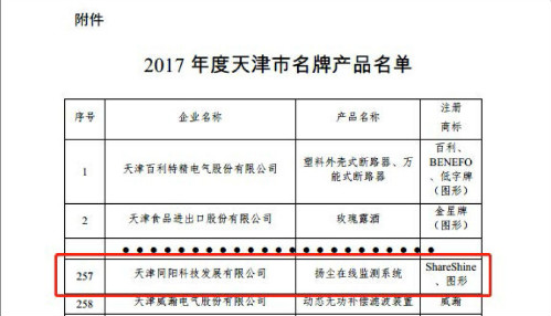更新時間: 點擊:15752 所屬欄目:公司新聞 Update Time: Hits:15752 Belong Column:News日前,2017年度天津市名牌產(chǎn)品名單正式公布,同陽科技的揚塵在線監(jiān)測系統(tǒng)榮獲“2017年度天津市名牌產(chǎn)品”稱號。