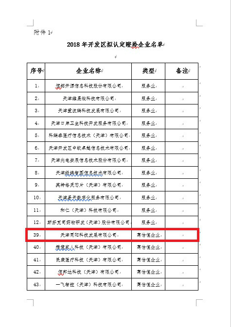 更新時間: 點擊:16583 所屬欄目:公司新聞 Update Time: Hits:16583 Belong Column:News日前,天津經(jīng)濟技術(shù)開發(fā)區(qū)根據(jù)《天津經(jīng)濟技術(shù)開發(fā)區(qū)促進(jìn)科技重點企業(yè)發(fā)展的實施辦法》(津開發(fā)[2017]45號)有關(guān)規(guī)定,經(jīng)企業(yè)申報、專家評審,認(rèn)定天津同陽科技發(fā)展有限公司等企業(yè)為瞪羚企業(yè)。