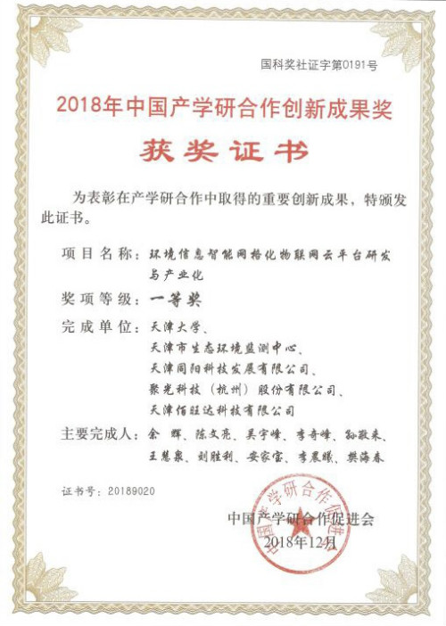 一直以來,同陽科技以“科技服務環(huán)境,科技提高環(huán)境”為企業(yè)使命,致力于發(fā)展成為國內環(huán)境監(jiān)測行業(yè)中堅企業(yè),產學研緊密結合代表性企業(yè)。公司擁有“天津市重點實驗室”、“天津市企業(yè)技術中心”、“院士工作站”和“博士后工作站”等基地平臺,為企業(yè)為社會培養(yǎng)了一大批高科技人才。此次殊榮的獲得,不僅是同陽科技在2018年省部級科技獎勵中的收官之作和又一重大突破,也是對同陽科技在產學研合作以及科研成果轉化方面為國家環(huán)保所作貢獻的充分肯定。未來,同陽科技將繼續(xù)依托公司現(xiàn)有的技術優(yōu)勢,持續(xù)加強與高校、科研機構的合作,為促進我國產學研融合,加快科技成果轉化貢獻力量。
