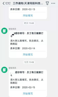 疫情之下,每一位同陽(yáng)家人的身體健康狀況成為公司最關(guān)切的問(wèn)題。公司對(duì)返津員工的居家隔離及健康情況進(jìn)行嚴(yán)密排查及跟蹤;上線釘釘日健康打卡,做好員工的每日健康跟蹤;匯總?cè)藛T情況,上報(bào)公司防治疫情日?qǐng)?bào)......守護(hù)每一位同陽(yáng)伙伴及家庭成員的健康是我們現(xiàn)階段最重要的任務(wù)。