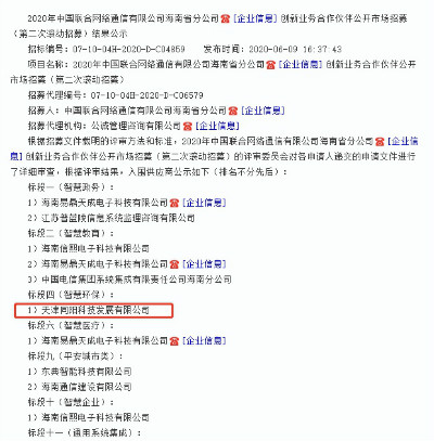 同陽科技中標(biāo)海南聯(lián)通創(chuàng)新業(yè)務(wù)合作伙伴公開市場招募項(xiàng)目