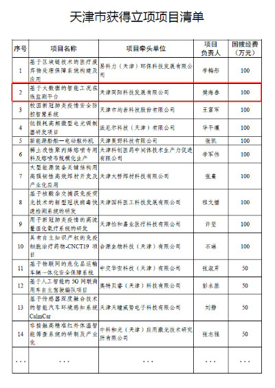 更新時間: 點擊:14396 所屬欄目:公司新聞 Update Time: Hits:14396 Belong Column:News近日,科技部公示了“科技助力經濟2020”重點專項擬立項項目,天津同陽科技發(fā)展有限公司牽頭承擔的【基于大數據的智能工況在線監(jiān)測平臺】項目成功入選。“科技助力經濟2020”重點專項由科技部發(fā)起,定位于支持一批覆蓋國民經濟主要行業(yè)的技術創(chuàng)新項目,特別是短期內能見到實效、對復工復產有直接帶動作用的技術成果轉化落地項目,以幫助一批優(yōu)秀科技型企業(yè)克服疫情帶來的短期困難。