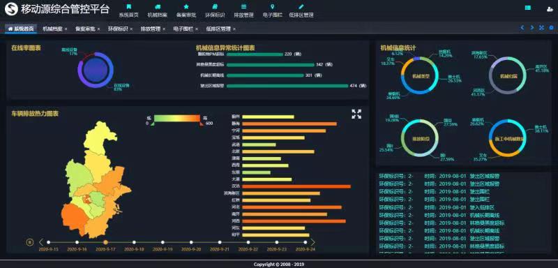 非道路移動(dòng)機(jī)械平臺可以查看全省/市的機(jī)械臺帳,以及對機(jī)械的遠(yuǎn)程監(jiān)管。掌握全部非道路移動(dòng)機(jī)械的排放階段、工況狀態(tài)、地理定位以及尾氣污染物排放情況并進(jìn)行數(shù)據(jù)分析與統(tǒng)計(jì)。還可以在線對工地電子圍欄、低排區(qū)等進(jìn)行規(guī)劃,降低非道路移動(dòng)機(jī)械在特定時(shí)間特定地點(diǎn)的污染物排放。