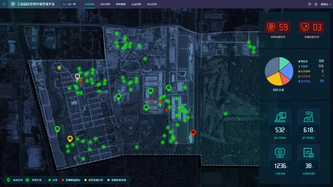 園區(qū)環(huán)境管理人員可通過平臺實現(xiàn)對園區(qū)污染物監(jiān)測信息的有效管理,能夠及時、快捷、便利地對各種監(jiān)測數(shù)據(jù)進行可視化監(jiān)控,并實現(xiàn)基礎(chǔ)信息的查詢、維護以及專題分析等多種功能。