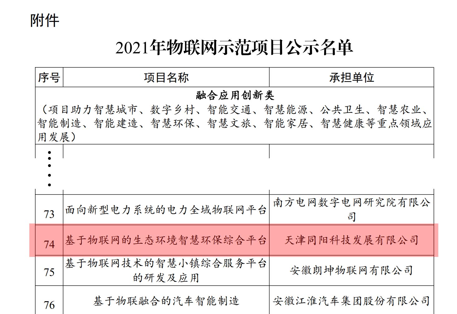 喜報 | 同陽科技強勢入圍工信部2021年度物聯(lián)網(wǎng)示范項目名單