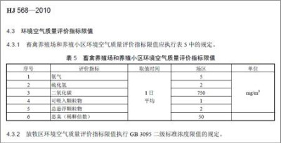 2010年,由生態(tài)環(huán)境部發(fā)布的《畜禽養(yǎng)殖產(chǎn)地環(huán)境評價規(guī)范》,明確了畜禽養(yǎng)殖場和養(yǎng)殖小區(qū)環(huán)境空氣質(zhì)量評價指標(biāo)限值。